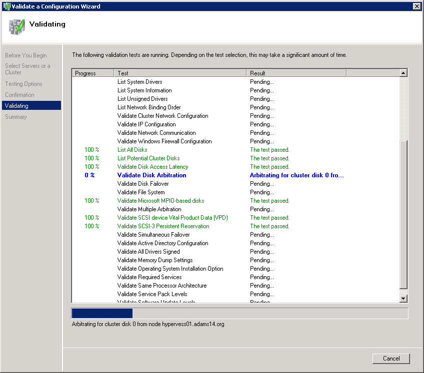 Well that's just great. Another stepping stone into my hair turning grey and being yanked out at the roots. The above is what I get when I try to validate the cluster I'm building for Hyper-V. Connected are 3 hosts, each with MPIO iSCSI connections to a pair of EqualLogic PS6000 arrays hosting a 2TB LUN for data. I thought I had followed all the correct steps to get this to work... until this happened.