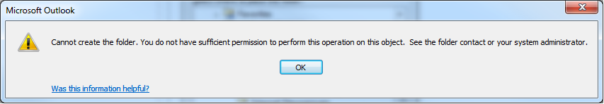 Wait... did you get the same error as at the top of the post? I did. Here's why: If your domain is setup like mine you have a normal (mail enabled) user and an admin (not mail enabled) user account. When you created the Public Folder in the EMC it was most likely under the admin user account which now has owner permissions to the folder, but your lowly Outlook user account doesn't. That little issue will keep you from doing anything worthwhile on the folder.